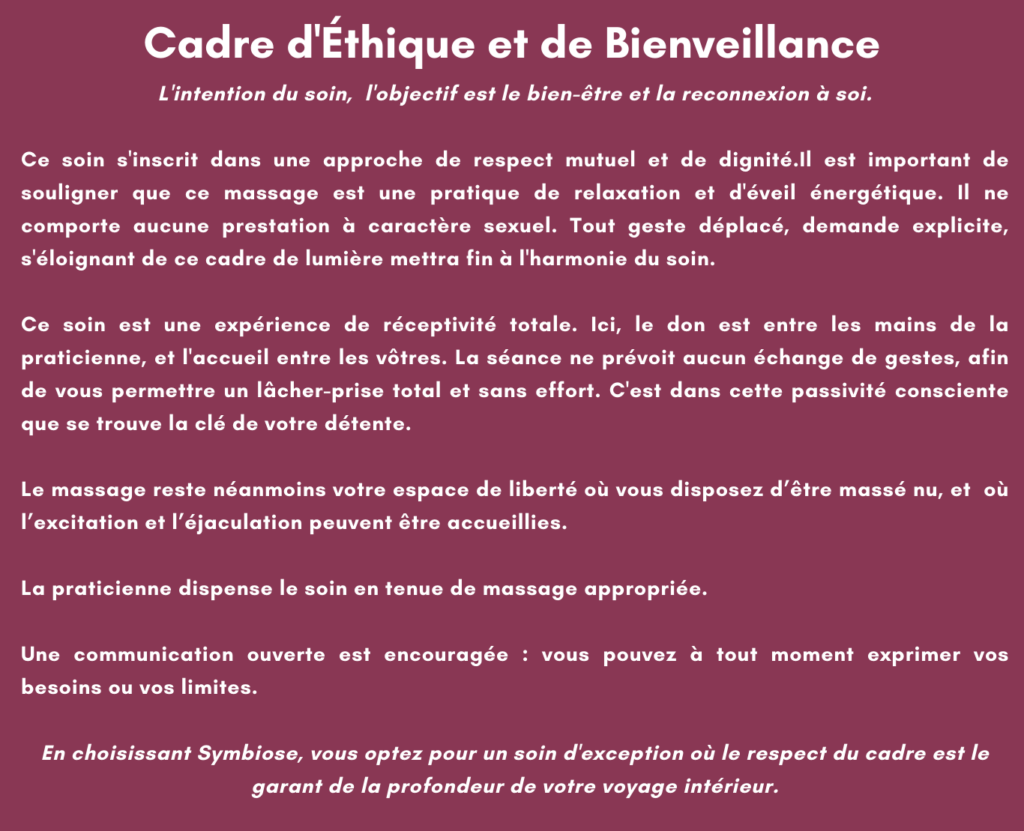 Un rituel de toucher conscient et d’éveil énergétique pour une reconnexion profonde. Cadre bienveillant et professionnel. Prenez rendez-vous.”